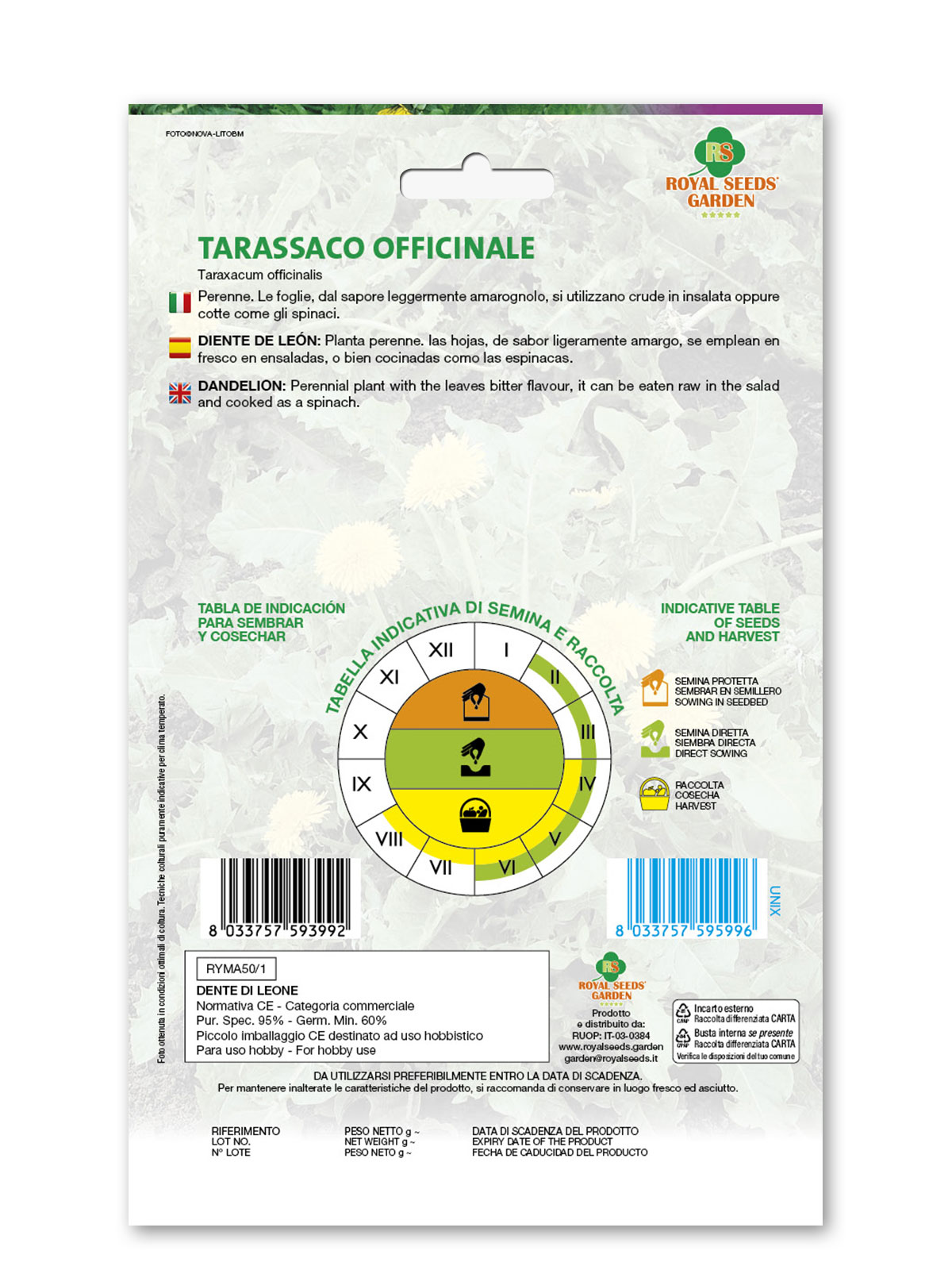 Dente di leone – Perenne. Le foglie, dal sapore leggermente amarognolo, si utilizzano crude in insalata oppure cotte come gli spinaci.